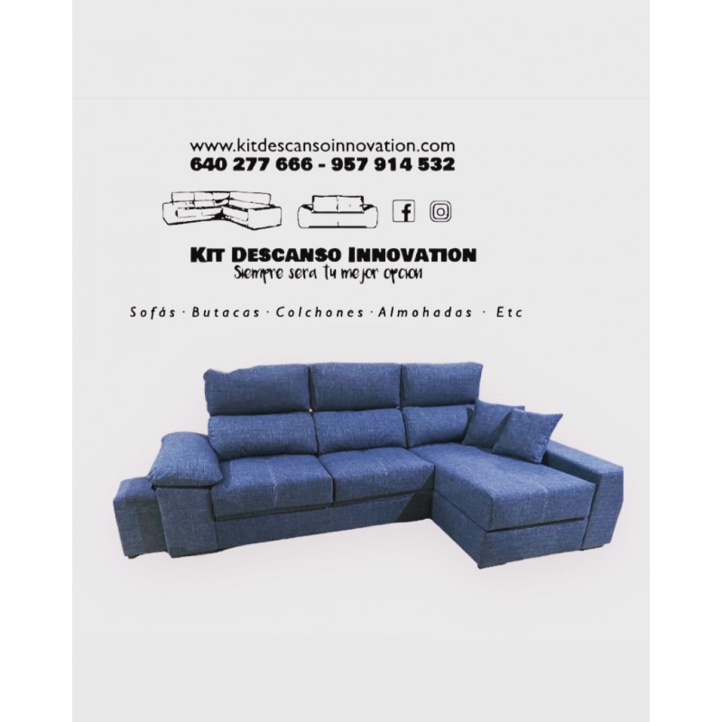 Chaiselong reclinable y extraible,con brazo almohadón y 2 pouf,telas anti anchas a elegir renovadas cada semana
